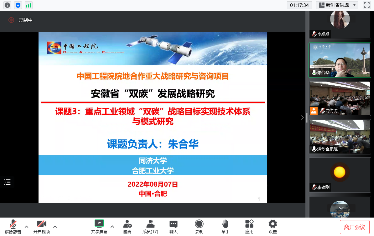 朱合华院士作《重点工业领域“双碳”战略目标实现技术体系与模式研究》课题汇报