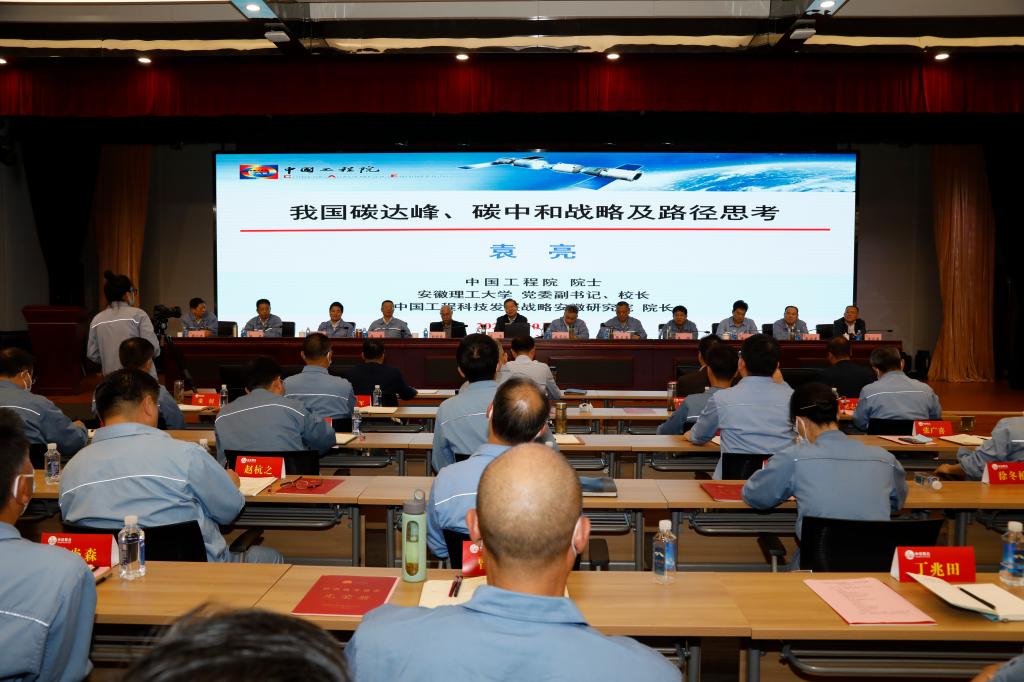 为推动科技创新和科技人才培养、深化技术交流合作,实现共赢发展,10月14日下午,中安联合煤化有限责任公司召开第一届科技创新暨人才工作大会,校长袁亮院士受邀出席中安联合第一届科技创新暨人才工作大会,并在会上为中安联合参会代表作了《我国碳达峰、碳中和战略及路径思考》的专题学术报告。公司党委书记、总经理施华彪作了讲话,公司党委副书记、常务副总经理张义勇主持大会。双方一致同意把学校分别与中国石油化工集团有限公司、中安联合煤化有限公司签订的战略合作协议落到实处,深入开展科研合作、人才培养和遴选导师等工作。