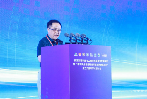 刘峰致辞。他代表中国煤炭学会、中国煤炭工业协会及本次学术论坛的组委会,对论坛的顺利举行表示衷心祝贺。他指出,六年来,“煤炭安全智能精准开采协同创新组织”搭建了能源科技学术交流合作的高端智库平台,通过将物联网、大数据、云计算、人工智能等先进技术与煤炭开采相融合,积极探索煤炭智能感知与控制技术的创新应用,取得的一系列重大研究成果为煤炭的安全智能绿色开采提供了有力支撑,推动了“煤炭安全智能精准开采”从科学构想发展成为理论和技术现实,为提升煤炭安全、高效、低碳的开采水平贡献力量。他希望大家以“协同创新组织”学术研讨会为契机,更加紧密携手合作,不断探索能源双碳科技领域的新理论、新技术、新成果、新经验,为推动我国能源科技进步贡献智慧和力量。