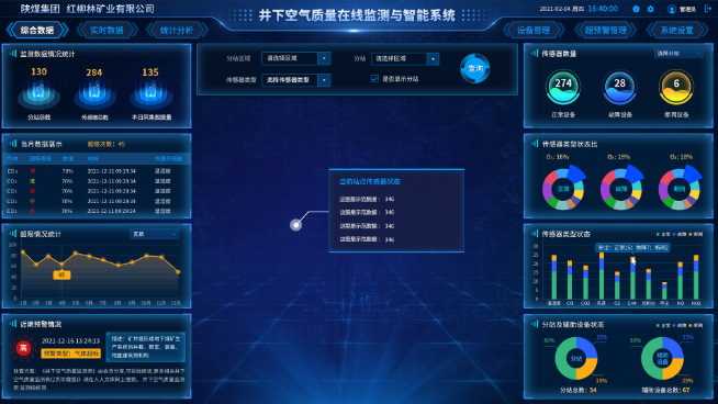 “依托工业互联网平台搭建的井下空气质量在线监测与智能预警平台完成了监测预警系统架构、数据库、设备管理、综合评价等主要功能模块设计,基于JEE开发平台,以SpringMVC作为后台框架开发了监测与预警系统软件。”该公司智能化部负责人介绍说,智能化矿井建设也为职业健康研究、预测预防带来了新的发展机遇,井下空气质量状况分析、数据检测实现了“一键直达”,这也是国内首个井下空气质量在线监测与智能预警平台。